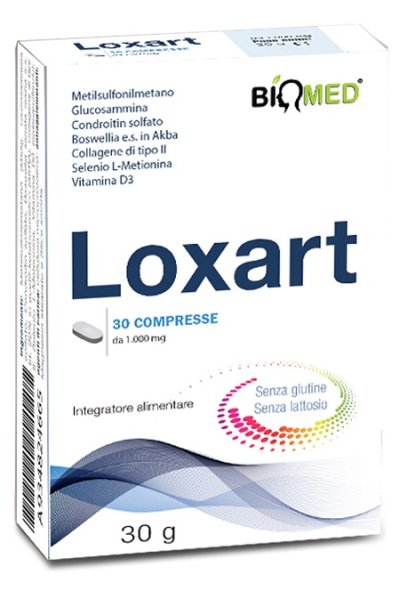 Integratore alimentare a base di metilsulfonilmetano, boswellia e.s. in AKBA, glucosammina, condroitina, collagene di tipo II e selenio L-metionina, vitamina D3 (colecalciferolo).