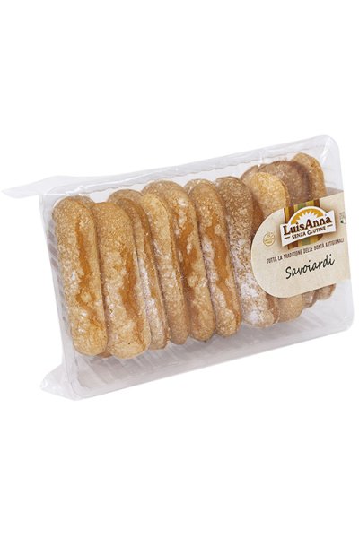 Uova, farina senza glutine (amido di frumento deglutinato, zucchero, sciroppo di glucosio da mais, latte scremato in polvere; emulsionanti: E472b, E477; addensanti: E1414, gomma di guar; agenti lievitanti: carbonato di sodio, difosfati di sodio; fibre di semi di psyllium; conservante: E202; aroma).