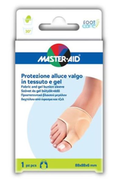 Protezione in gel e tessuto elastico per l’alluce valgo.