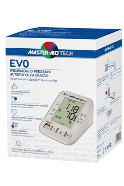 EVO è un misuratore di pressione automatico, facile da utilizzare e dotato di un display LCD ampio e facile da leggere.