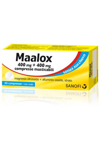 AvvertenzeL’alluminio idrossido può causare stitichezza e un sovradosaggio di sali di magnesio può causare ipomotilità dell’intestino; alte dosi di questo medicinale possono causare o aggravare l’ostruzione intestinale e dell’ileo nei pazienti a più alto rischio, come quelli con compromissione renale, con stipsi di base, con alterazione della motilità intestinale, in bambini (da 0 a 24 mesi), o anziani. L’alluminio idrossido non è ben assorbito dal tratto gastrointestinale, e gli effetti sistemici sono quindi rari in pazienti con una normale funzionalità renale. Tuttavia, dosi eccessive o uso a lungo termine, o anche dosi normali in pazienti con diete povere di fosforo o in bambini (da 0 a 24 mesi), possono portare ad eliminazione del fosfato (a causa di un legame alluminio–fosfato) accompagnata da un aumento del riassorbimento osseo e ipercalciuria con rischio di osteomalacia. Si consiglia di consultare il medico nel caso di un uso a lungo termine o in pazienti a rischio di ipofosfatemia. Nei pazienti con compromissione renale i livelli plasmatici di alluminio e magnesio tendono ad aumentare causando rispettivamente iperalluminemia e ipermagnesiemia. In questi pazienti, lunghe esposizioni ad alte dosi di sali di alluminio e magnesio possono condurre a encefalopatie, demenza, anemia microcitica o al peggioramento di osteomalacia da dialisi. In presenza di forme lievi e moderate di insufficienza renale si consiglia di assumere il prodotto sotto il diretto controllo del medico. In questi pazienti deve essere evitato l’uso prolungato del medicinale. L’alluminio idrossido potrebbe non essere sicuro in pazienti affetti da porfiria sottoposti ad emodialisi (vedere paragrafo 4.3). MAALOX contiene sorbitolo e maltitolo I pazienti affetti da rari problemi ereditari di intolleranza al fruttosio, non devono assumere questo medicinale.