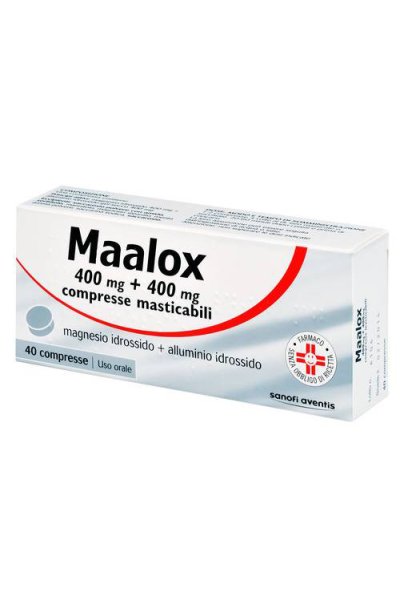 AvvertenzeL’alluminio idrossido può causare stitichezza e un sovradosaggio di sali di magnesio può causare ipomotilità dell’intestino; alte dosi di questo medicinale possono causare o aggravare l’ostruzione intestinale e dell’ileo nei pazienti a più alto rischio, come quelli con compromissione renale, con stipsi di base, con alterazione della motilità intestinale, in bambini (da 0 a 24 mesi), o anziani. L’alluminio idrossido non è ben assorbito dal tratto gastrointestinale, e gli effetti sistemici sono quindi rari in pazienti con una normale funzionalità renale. Tuttavia, dosi eccessive o uso a lungo termine, o anche dosi normali in pazienti con diete povere di fosforo o in bambini (da 0 a 24 mesi), possono portare ad eliminazione del fosfato (a causa di un legame alluminio–fosfato) accompagnata da un aumento del riassorbimento osseo e ipercalciuria con rischio di osteomalacia. Si consiglia di consultare il medico nel caso di un uso a lungo termine o in pazienti a rischio di ipofosfatemia. Nei pazienti con compromissione renale i livelli plasmatici di alluminio e magnesio tendono ad aumentare causando rispettivamente iperalluminemia e ipermagnesiemia. In questi pazienti, lunghe esposizioni ad alte dosi di sali di alluminio e magnesio possono condurre a encefalopatie, demenza, anemia microcitica o al peggioramento di osteomalacia da dialisi. In presenza di forme lievi e moderate di insufficienza renale si consiglia di assumere il prodotto sotto il diretto controllo del medico. In questi pazienti deve essere evitato l’uso prolungato del medicinale. L’alluminio idrossido potrebbe non essere sicuro in pazienti affetti da porfiria sottoposti ad emodialisi (vedere paragrafo 4.3). MAALOX 3,65% + 3,25% sospensione orale contiene: • paraidrossibenzoati: possono causare reazioni allergiche (anche ritardate); • sorbitolo: i pazienti affetti da rari problemi ereditari di intolleranza al fruttosio, non devono assumere questo medicinale. MAALOX 400 mg + 400 mg compresse masticabili contiene sorbitolo e saccarosio I pazienti affetti da rari problemi ereditari di intolleranza al fruttosio, da malassorbimento di glucosio–galattosio, o da insufficienza di sucrasi isomaltasi, non devono assumere questo medicinale.