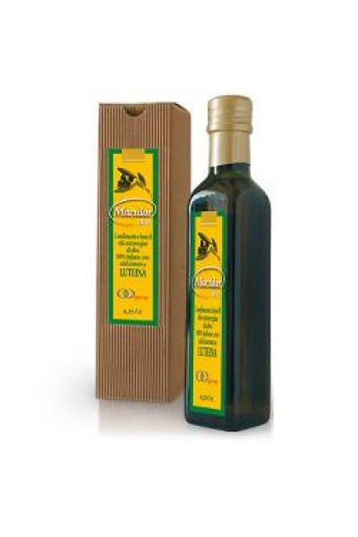 L’aggiunta di luteina a questo alimento ne fa un prodotto finalizzato sia alla prevenzione che al trattamento di carenze di tale carotenoide e al ripristino del patrimonio di antiossidanti nell’organismo. L’aggiunta di luteina, che conferisce all’olio extravergine di oliva un colore lievemente dorato, non altera minimamente le sue qualità organolettiche né le proprietà nutritive che esso garantisce. I polifenoli e la vitamina E, presenti nell’olio di oliva, contribuiscono ad aumentare il potere antiossidante di questo importante condimento. Non contiene glutine.