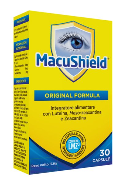 Integratore alimentare con luteina, meso-zeaxantina e zeaxantina.