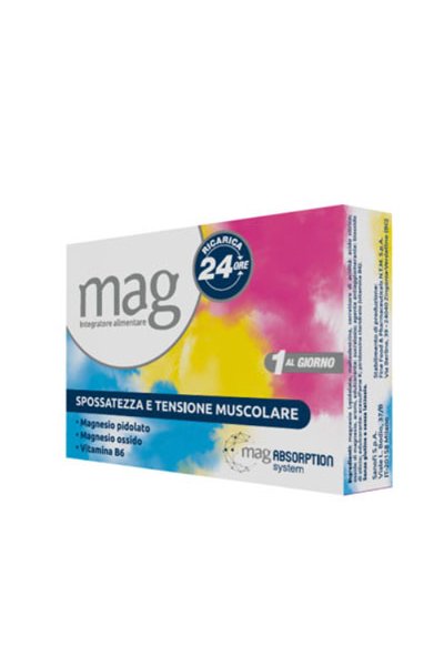 Integratore alimentare a base di magnesio e vitamina B6, con edulcoranti, può essere utile in caso di spossatezza e tensione muscolare. La sua formulazione, basata sulla composizione Mag absorption system, combina sali di magnesio ad assorbimento differenziato e vitamina B6, per un'azione sinergica: