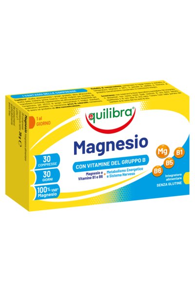 Integratore alimentare a base di Magnesio, con vitamine del gruppo B, utile in caso di ridotto apporto con la dieta o di aumentato fabbisogno organico di tali nutrienti. Il Magnesio può risultare utile per il mantenimento della struttura delle ossa e dei denti, ed in associazione con le vitamine B1, B5 e B6 contribuisce attivamente a sostenere il metabolismo energetico dell'organismo; magnesio e acido pantotenico inoltre aiutano a ridurre la sensazione di affaticamento e stanchezza, mentre le vitamine B1 e B6 intervengono nel fisiologico funzionamento del sistema nervoso.Senza glutine.