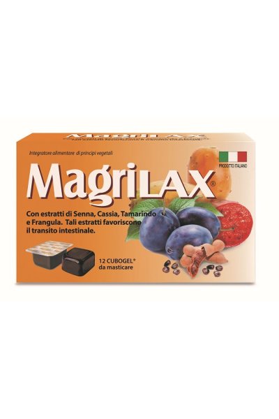 Integratore alimentare di principi vegetali che, grazie ai suoi componenti, favorisce la regolarità del transito intestinale. In particolare il Tamarindus indica contribuisce alla regolazione del transito intestinale favorendo la formazione di feci di volume e consistenza normali, mentre Opuntia ficus indica favorisce l'equilibrio del peso corporeo attraverso la modulazione dell'assorbimento dei nutrienti. Magrilax si presenta con un gradevole gusto alla prugna ed è di facile assunzione grazie alle pratiche confezioni in Cubogel da masticare.