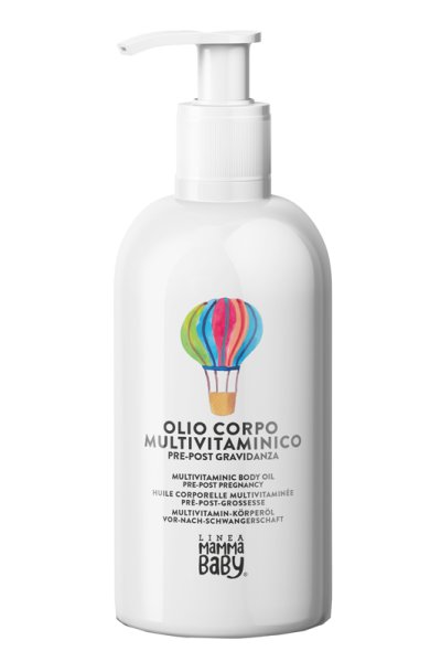 Olio multivitaminico ideale per il trattamento del corpo della mamma prima e dopo la gravidanza.
