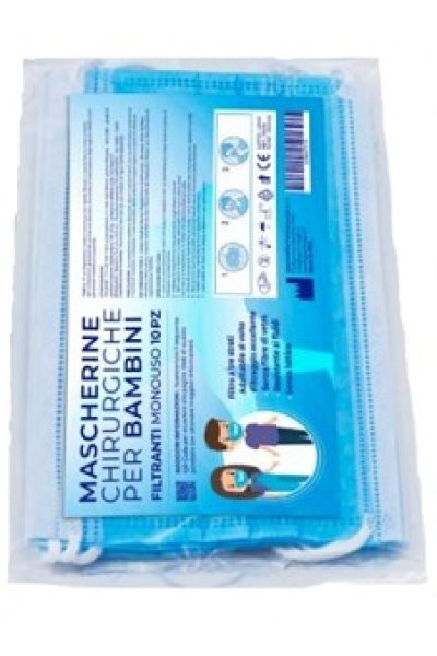 Dispositivo medico monouso non sterile idoneo a coprire bocca, naso e mento del bambino/a garantendo quindi una barriera che limita la trasmissione degli agenti infettivi.