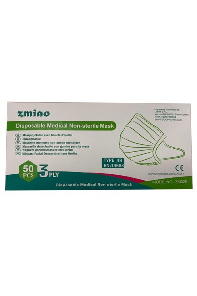 Mascherina chirurgica 3 veli, non sterile, non lavabile, monouso. La maschera è progettata per un massimo di 4 ore di utilizzo; si prega di non riutilizzare. Il riutilizzo può provocare la crescita di batteri nella maschera; se i batteri dovessero iniziare a svilupparsi nella maschera, si noterà un odore insolito. Tutte le maschere soddisfano i requisiti della norma EN14683, compatibile con la direttiva sui dispositivi medici 93/42/CEE.