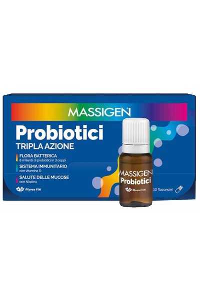 Integratore alimentare di fermenti lattici vivi con 8 miliardi di probiotici in 3 ceppi e con vitamina D e B3, che favoriscono l'equilibrio della flora batterica intestinale che può essere alterata da antibiotici, fattori alimentari e organici.