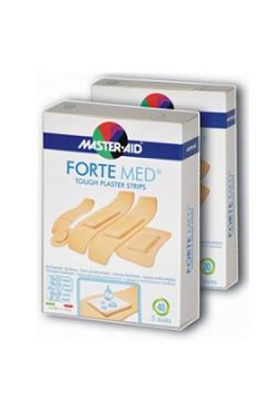 Dispositivo medico CE 0373. Cerotti in striscia a protezione elevata. Tampone con disinfettante (clorexidina digluconato). FORTE med offre una elevata protezione della ferita dagli agenti esterni (sporcizia, batteri) grazie ad un supporto particolarmente resistente. FORTE med grazie alla microperforazione consente la traspirazione della cute evitando processi di macerazione. L'adesivo ipoallergenico è particolarmente indicato anche per le pelli più sensibili.Caratteristiche tecniche