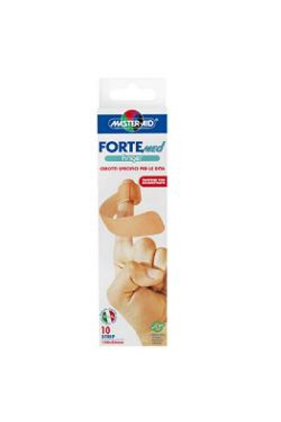 Dispositivo medico CE 0373. Cerotti specifici per le dita a protezione elevata. Tampone con disinfettante (clorexidina digluconato). FORTE med offre una elevata protezione della ferita dagli agenti esterni (sporcizia, batteri) grazie ad un supporto particolarmente resistente. FORTE med grazie alla microperforazione consente la traspirazione della cute evitando processi di macerazione. L'adesivo ipoallergenico è particolarmente indicato anche per le pelli più sensibili.Caratteristiche tecniche