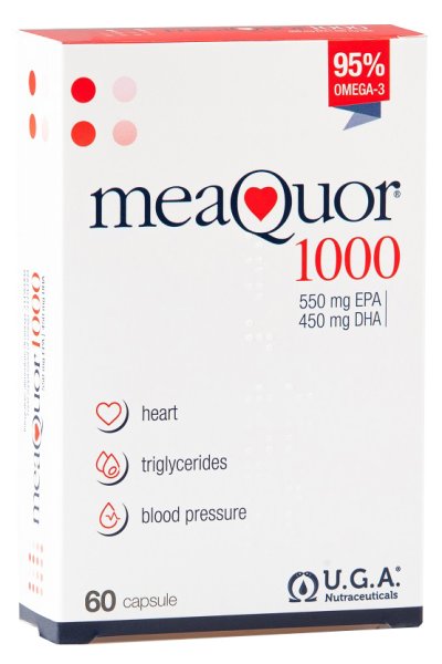 - L'assunzione giornaliera di 250 mg di EPA+DHA contribuisce al mantenimento di una normale funzione cardiaca (1 capsula di Meaquor 1000).