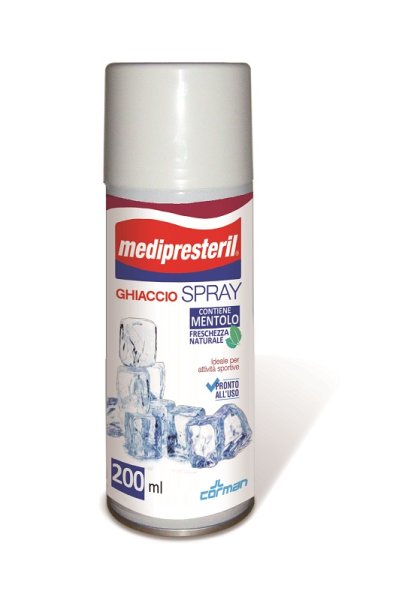 Dispositivo medico CE monouso.Ghiaccio spray che lenisce il dolore causato da traumi, contusioni o distorsioni. Ideale per attività spertive.