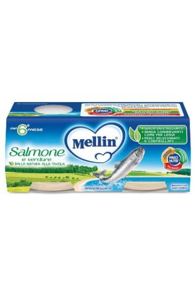 Acqua di cottura, verdure (23%) (patate, cipolle, sedano rapa), filetto di salmone (18%), amido di mais, farina di riso, olio di semi di girasole, succo concentrato di limone.