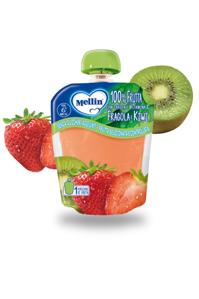 Purea di banana (33%), purea di mela (28,5%) purea di fragola (25%), purea di kiwi (12%), purea di carota (1,5%), vitamina C.