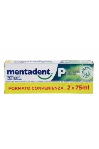 La nuova formula di Mentadent P prevenzione completa, contiene zinco, un antibatterico di origine naturale per prevenire i principali problemi orali.