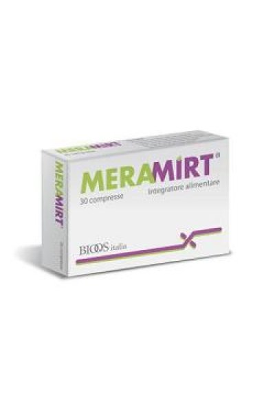 Integratore alimentare utile come valido supporto nutrizionale per il miglioramento della funzionalità visiva in corso di astenopia. L’astenopia è un insieme di sintomi causati da un affaticamento dei muscoli oculari intrinseci (muscoli ciliari) ed estrinseci (muscoli che muovono l’occhio). Si manifesta con affaticabilità alla lettura, cefalea frontale, arrossamento oculare, fotofobia, nausea, vertigini e contrazioni palpebrali. L’astenopia è presente spesso nei soggetti ipermetropi a causa del continuo sforzo accomodativo (astenopia accomodativa) e in coloro che utilizzano il videoterminale, studenti, o che svolgono un'attività lavorativa di precisione (astenopia occupazionale).Meramirt è a base di Zinco, L-carnitina, estratto di frutti di Sambuco, estratto di Ribes ed estratto di radice di Eleuterococco. Tali componenti possono essere utili nel contrastare l’azione ossidante dei radicali liberi, che possono essere prodotti in queste particolari condizioni. Gli stessi componenti possono svolgere un utile ruolo nel ciclo della visione.