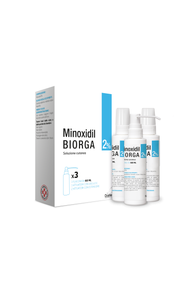 PosologiaPosologia La dose di 1 ml di soluzione cutanea al 2% di Minoxidil Biorga deve essere applicata sul cuoio capelluto due volte al giorno (una volta la mattina e una volta la sera). Questa dose deve essere somministrata a prescindere dalla dimensione dell’area interessata. La dose totale giornaliera non deve superare i 2 ml. Popolazione pediatrica e popolazione anziana Non è raccomandato sotto i 18 anni e sopra i 65 anni di età in considerazione della mancanza di dati sulla sicurezza e sull’efficacia. Modo di somministrazione La soluzione cutanea al 2% di Minoxidil Biorga è solo per uso esterno. La soluzione cutanea al 2% di Minoxidil Biorga deve essere applicata seguendo le istruzioni e unicamente sul cuoio capelluto. La soluzione cutanea al 2% di Minoxidil Biorga deve essere applicata soltanto su capelli e cuoio capelluto asciutti. Dopo l’applicazione della soluzione cutanea al 2% di Minoxidil Biorga lavare bene le mani. Potrebbe essere necessario applicare il prodotto due volte al giorno per quattro o più mesi. In ogni caso, il medico deve valutare l’opportunità di interrompere il trattamento se non si osservano risultati entro 4 mesi. Se si osserva una ricrescita dei capelli, si deve proseguire l’applicazione della soluzione cutanea al 2% di Minoxidil Biorga due volte al giorno, per mantenerne gli effetti. Dopo la sospensione del trattamento topico con il minoxidil, sono stati occasionalmente segnalati l’interruzione della ricrescita dei capelli e il ritorno all’aspetto precedente nell’arco di 3–4 mesi dopo l’interruzione del trattamento.