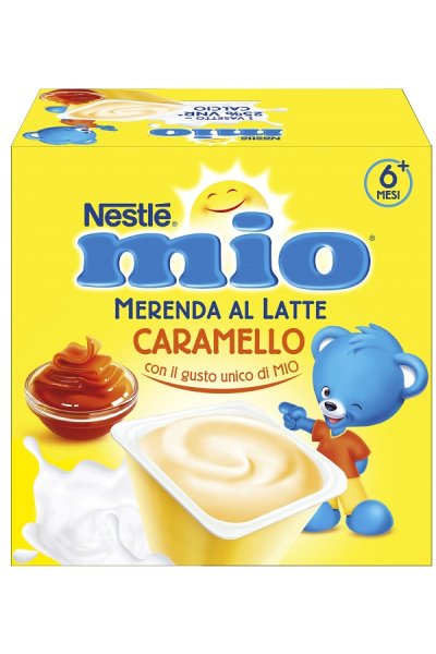 Merenda a base di latte con zucchero caramellato, è preparata con oltre l'85% di latte e contiene naturalmente calcio, che contribuisce allo sviluppo normale delle ossa.