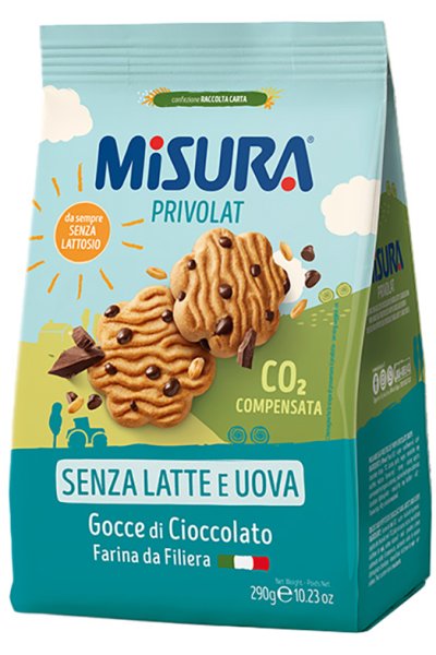 Biscotti con gocce di cioccolato, senza latte e uova e fonte di fibre.