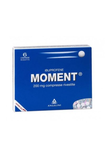 Interazioni• Sono da tenere presenti eventuali interazioni con gli anticoagulanti di tipo cumarinico: i pazienti sottoposti a trattamento con tali farmaci debbono consultare il medico prima di assumere il prodotto. È inoltre consigliabile ricorrere al consiglio del medico in caso di qualunque concomitante terapia prima della somministrazione del prodotto. • Corticosteroidi: aumento del rischio di ulcerazione o emorragia gastrointestinale (vedi sezione 4.4). • Anticoagulanti: i FANS possono aumentare gli effetti degli anticoagulanti, come il warfarin (vedi sezione 4.4). • Agenti antiaggreganti e inibitori selettivi del reuptake della serotonina (SSRIs): aumento del rischio di emorragia gastrointestinale (vedi sezione 4.4). • Diuretici, ACE inibitori e Antagonisti dell’angiotensina II: i FANS possono ridurre l’effetto dei diuretici e di altri farmaci antiipertensivi. In alcuni pazienti con funzione renale compromessa (per esempio pazienti disidratati o pazienti anziani con funzione renale compromessa) la co–somministrazione di un ACE inibitore o di un antagonista dell’angiotensina II e di agenti che inibiscono il sistema della ciclo–ossigenasi può portare a un ulteriore deterioramento della funzione renale, che comprende una possibile insufficienza renale acuta, generalmente reversibile. Queste interazioni devono essere considerate in pazienti che assumono Moment in concomitanza con ACE inibitori o antagonisti dell’angiotensina II. Quindi, la combinazione deve essere somministrata con cautela, specialmente nei pazienti anziani. • I pazienti devono essere adeguatamente idratati e deve essere preso in considerazione il monitoraggio della funzione renale dopo l’inizio della terapia concomitante. • Dati sperimentali indicano che l’ibuprofene può inibire gli effetti dell’acido acetilsalicilico a basse dosi sull’aggregazione piastrinica quando i farmaci sono somministrati in concomitanza. Tuttavia, l’esiguità dei dati e le incertezze relative alla loro applicazione alla situazione clinica non permettono di trarre delle conclusioni definitive per l’uso continuativo di ibuprofene; sembra che non vi siano effetti clinicamente rilevanti dall’uso occasionale dell’ibuprofene (vedi sezione 5.1).