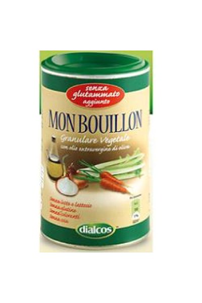 Preparato per brodo senza glutammato aggiunto. Preparato per brodo e condimento in polvere, solubile, esclusivamente vegetale. L'estratto di lievito (Saccharomyces Cerevisiae) impiegato in sostituzione del glutammato monosodico, costituisce la base aromatica. L'olio extravergine di oliva completa ed arricchisce il sapore.Ingredienti