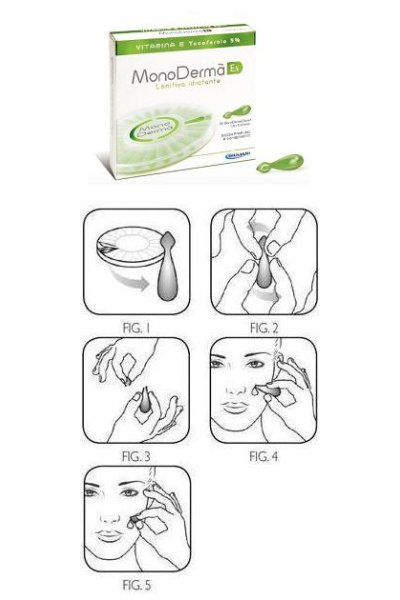 Prodotto dermatologico contiene vitamina E pura di origine naturale alla concentrazione del 5%. La vitamina E rappresenta un fattore nutritivo essenziale ed indispensabile per le funzioni della pelle. La cute, a causa di un’eccessiva produzione di radicali liberi, è sottoposta a diversi tipi di stress ossidativi per cause sia esogene che endogene; la vitamina E pura di derivazione naturale migliora l’attività dei sistemi antiossidanti locali contrastando i danni provocati dall’azione dei radicali liberi, contrasta i processi infiammatori, svolge un’efficace azione idratante e lenitiva, alleviando il prurito, oltre a proteggere dai danni del fotoinvecchiamento (eccessiva esposizione ai raggi solari, lampade UV). La monodermodose consente di avere una formula essenziale, sicura e ben tollerata dalla pelle, grazie alla totale assenza di conservanti e profumo.Modalità d'uso