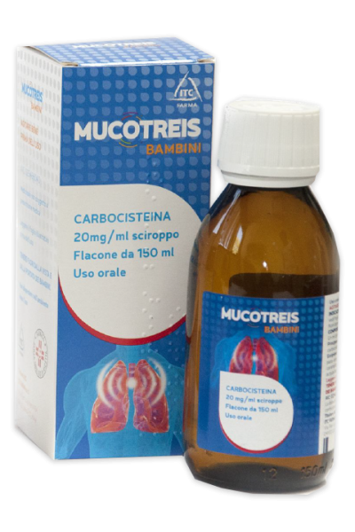 MUCOTREIS 0,3 g polvere per soluzione orale Una bustina contiene: Principio attivo: carbocisteina 0,3 g MUCOTREIS 1,5 g granulato per sospensione orale Una bustina contiene: Principio attivo: carbocisteina 1,5 g MUCOTREIS 20 mg/ml sciroppo bambini 1 ml contiene: Principio attivo: carbocisteina 20 mg MUCOTREIS 50 mg/ml sciroppo adulti 1 ml contiene: Principio attivo: carbocisteina 50 mg Per l’elenco completo degli eccipienti vedere paragrafo 6.1