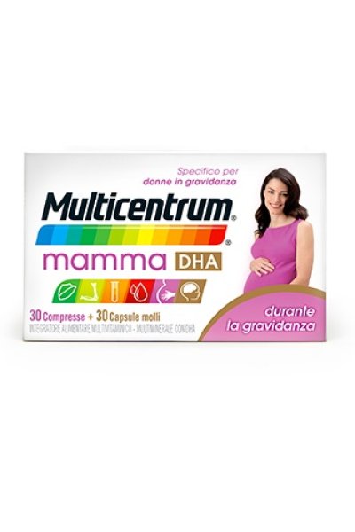 Contiene tutte le vitamine e i minerali essenziali a supportare il metabolismo e ad integrare l’alimentazione delle donne incinte. I nutrienti presenti in Multicentrum Mamma DHA hanno molti benefici impattando su: difese naturali, salute delle ossa, livelli di glucosio nel sangue, formazione del sangue, salute della placenta. L’acido docosaesaenoico (DHA), componente principale dell’olio di pesce, contribuisce allo sviluppo del cervello e degli occhi del feto*.