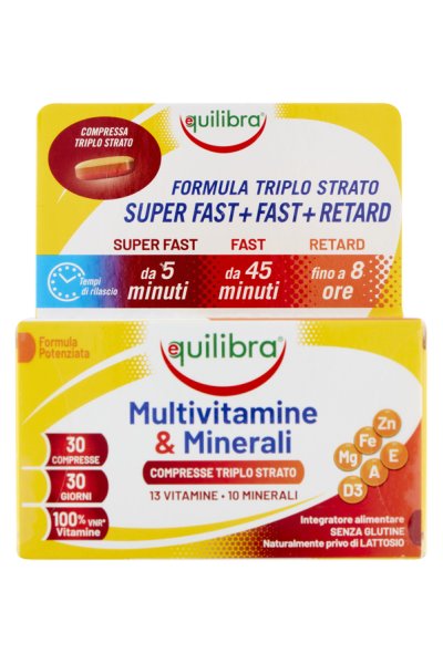 Integratore alimentare a base di vitamine e minerali in compresse triplo strato formulate con tecnologia innovativa SUPER FAST + FAST + RETARD che permette un rilascio graduale nel tempo delle vitamine e dei minerali. Formula completa studiata per le esigenze specifiche degli adulti con più di 50 anni.