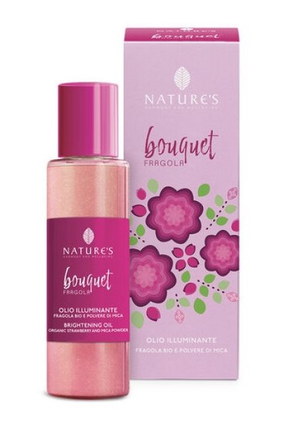 Olio multiuso che racchiude un concentrato di oli emollienti, di polvere di mica e di estratti naturali di fragola bio e pesca, che proteggono la pelle dalla secchezza.