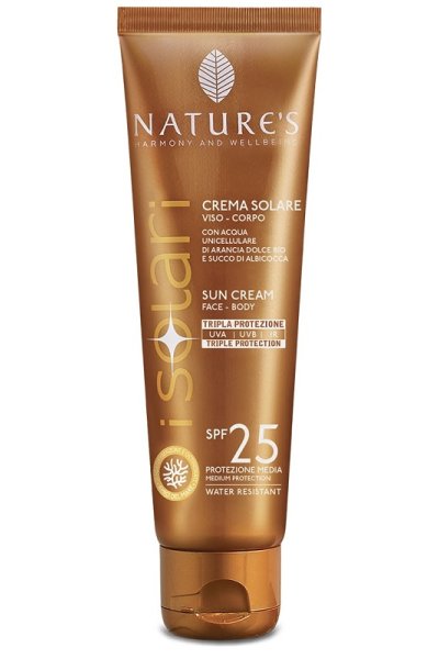 Crema solare viso e corpo con acqua unicellulare di arancia dolce bio e succo di albicocca.