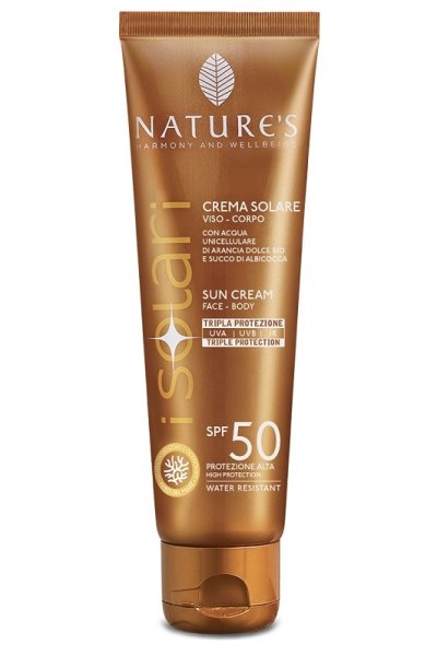 Crema solare viso e corpo con acqua unicellulare di arancia dolce bio e olio di riso.