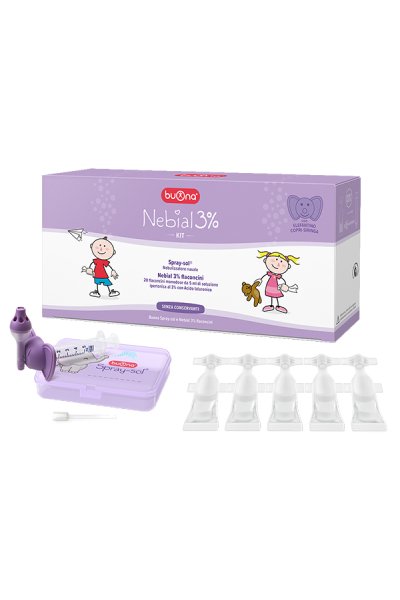 Nebial 3% KIT permette la nebulizzazione di Nebial 3% flaconcini, mediante il dispositivo medico Spray-sol (brevetto in licenza esclusiva Buona Spa Società Benefit).
