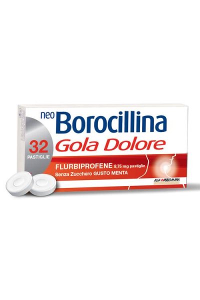 AvvertenzeAlle dosi consigliate, nell’usare il medicinale nelle sue diverse forme farmaceutiche, l’eventuale deglutizione non comporta, di per sé, alcun danno per il paziente, in quanto tali dosi sono ampiamente inferiori a quelle comunemente utilizzate nei trattamenti con il flurbiprofene per via sistemica. NEO BOROCILLINA GOLA DOLORE collutorio e NEO BOROCILLINA GOLA DOLORE spray per mucosa orale (tutte le presentazioni) contengono come conservanti metile paraidrossibenzoato e propile paraidrossibenzoato: possono causare reazioni allergiche (anche ritardate). Per la presenza di sorbitolo, i pazienti affetti da rari problemi ereditari di intolleranza al fruttosio, non devono assumere NEO BOROCILLINA GOLA DOLORE collutorio e NEO BOROCILLINA GOLA DOLORE spray per mucosa orale (tutte le presentazioni). NEO BOROCILLINA GOLA DOLORE spray (tutte le presentazioni) contiene una piccola quantità di alcool etilico inferiore a 100 mg per dose. NEO BOROCILLINA GOLA DOLORE collutorio contiene 12,15 vol % etanolo (alcool), ad es. fino a 960 mg per dose, equivalenti a circa 24 ml di birra, 10 ml di vino per dose. Può essere dannoso per gli alcolisti. Da tenere in considerazione nelle donne in gravidanza o in allattamento, nei bambini e nei gruppi ad alto rischio come le persone affette da patologie epatiche o epilessia. NEO BOROCILLINA GOLA DOLORE 0,25% spray per mucosa orale gusto arancia e miele e NEO BOROCILLINA GOLA DOLORE 0,25% spray per mucosa orale gusto limone e miele contengono anche il colorante giallo tramonto (E110), che può causare reazioni allergiche.NEO BOROCILLINA GOLA DOLORE 8,75 mg pastiglie gusto arancia e miele e NEO BOROCILLINA GOLA DOLORE 8,75 mg pastiglie gusto limone e miele contengono isomalto: i pazienti affetti da rari problemi ereditari di intolleranza al fruttosio, non devono assumere questo medicinale. In pazienti con insufficienza renale, cardiaca o epatica il medicinale NEO BOROCILLINA GOLA DOLORE deve essere utilizzato con cautela. E’ consigliato non associare il medicinale con i FANS. L’uso, specie se prolungato, del prodotto può dare origine a fenomeni di sensibilizzazione o di irritazione locale; in tali casi occorre interrompere il trattamento e consultare il medico per istituire, se necessario, una terapia idonea. Non usare per trattamenti protratti. Dopo breve periodo di trattamento senza risultati apprezzabili consultare il medico.