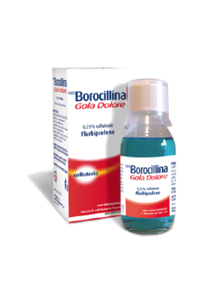 Indicazioni terapeuticheNEO BOROCILLINA GOLA DOLORE collutorio / NEO BOROCILLINA GOLA DOLORE spray per mucosa orale si usa nel trattamento sintomatico di stati irritativo–infiammatori anche associati a dolore del cavo orofaringeo (ad es. gengiviti, stomatiti, faringiti), anche in conseguenza di terapia dentaria conservativa o estrattiva. NEO BOROCILLINA GOLA DOLORE pastiglie si usa nel trattamento sintomatico di stati irritativo–infiammatori anche associati a dolore del cavo orofaringeo (ad es. gengiviti, stomatiti, faringiti).