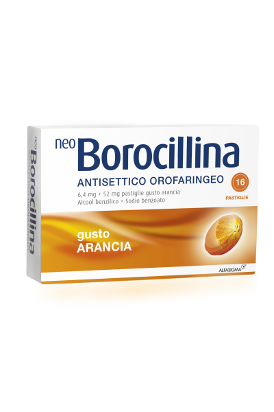 Una pastiglia contiene: • Alcool benzilico......................................... mg....... 6,4 • Sodio benzoato........................................... mg..... 52 (equivalente a mg 44,1 di Acido benzoico) Eccipiente con effetti noti: pastiglie gusto mentolo–eucaliptolo Saccarosio...................................................... mg 1494,02 pastiglie gusto miele limone Saccarosio...................................................... mg 1475,88 pastiglie gusto arancia Saccarosio...................................................... mg 1471,91 Per l’elenco completo degli eccipienti, vedere 6.1.