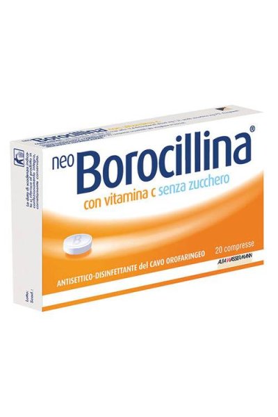 AvvertenzeLe pastiglie di Neo Borocillina senza zucchero contengono vitamina C, pertanto devono essere usate con cautela da soggetti che soffrono, o abbiano sofferto in passato, di nefrolitiasi (calcolosi renale) e da quelli affetti da Deficit di G6PD (Glucosio–6–fostato deidrogenasi), emocromatosi, talassemia o anemia sideroblastica. Il prodotto non contiene saccarosio, può quindi essere assunto da chi deve evitare la somministrazione di tale zucchero. L’impiego, specie se prolungato, dei prodotti per uso topico orale può dare origine a fenomeni di sensibilizzazione. In tal caso è necessario interrompere il trattamento e consultare il medico ai fini della istituzione di eventuale idonea terapia. Dopo breve periodo di trattamento senza risultati apprezzabili, consultare il medico. TENERE FUORI DALLA PORTATA E DALLA VISTA DEI BAMBINI.