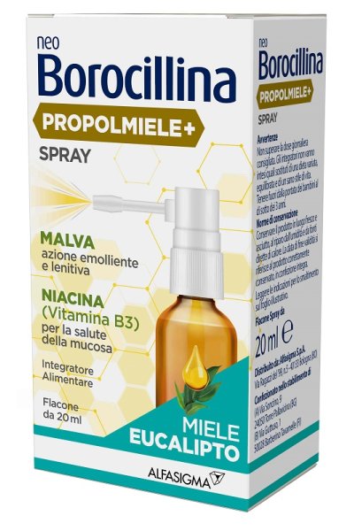 Al gusto eucalipto e miele, nato dalla ricerca NeoBorocillina per il benessere della gola.