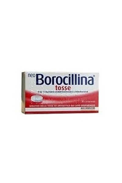 AvvertenzeIn caso di tosse irritante con una notevole produzione di muco (ad es. nei pazienti affetti da patologie quali bronchiettasia e fibrosi cistica) oppure nei pazienti affetti da malattie neurologiche associate a una marcata riduzione del riflesso della tosse (come ictus, malattia di Parkinson e demenza), il trattamento con Neo Borocillina Tosse pastiglie come sedativo della tosse dovrebbe essere somministrato con particolare cautela e solo su consiglio medico dopo un’attenta valutazione del rischio-beneficio (vedere paragrafo 4.5). Vi sono informazioni limitate sull’uso del destrometorfano nei pazienti con compromissione della funzionalità epatica o renale. Pertanto, Neo Borocillina Tosse pastiglie deve essere somministrato con cautela in tali pazienti, specialmente nei pazienti con compromissione grave. Il destrometorfano è metabolizzato dal citocromo epatico P450 2D6. L’attività di questo enzima è geneticamente determinata. Circa il 10% della popolazione metabolizza lentamente il CYP2D6. In metabolizzatori lenti e pazienti con uso concomitante di inibitori del CYP2D6 possono manifestarsi effetti esagerati e/o prolungati del destrometorfano. È necessario pertanto prestare attenzione in pazienti metabolizzatori lenti del CYP2D6 o che utilizzano inibitori del CYP2D6 (vedere anche paragrafo 4.5). A causa del potenziale rilascio di istamina, si dovrebbe evitare l’uso di Neo Borocillina Tosse pastiglie in caso di mastocitosi. Una tosse cronica può essere un sintomo precoce di asma e quindi Neo Borocillina Tosse pastiglie non è indicato per la soppressione della tosse cronica, in particolare nei bambini. Neo Borocillina Tosse pastiglie deve essere usato con cautela nei pazienti che assumono farmaci serotoninergici (diversi dai farmaci inibitori delle MAO), quali inibitori selettivi della ricaptazione della serotonina (SSRI) (per es. fluoxetina, paroxetina) o farmaci antidepressivi triciclici (vedere paragrafo 4.5). L’impiego, specie se prolungato, dei prodotti per uso topico può dare origine a fenomeni di sensibilizzazione. In tal caso è necessario interrompere il trattamento e consultare il medico ai fini della istituzione di eventuale terapia idonea. Dopo 5-7 giorni di trattamento, senza risultati apprezzabili, consultare il medico. Informazioni importanti su alcuni eccipienti Contiene 1,386 g di saccarosio (zucchero) per pastiglia. Da tenere in caso di considerazione in persone affette da diabete mellito. I pazienti affetti da rari problemi ereditari di intolleranza al fruttosio, da malassorbimento di glucosio-galattosio, o da insufficienza di sucrasi isomaltasi, non devono assumere questo medicinale. Il prodotto contiene aspartame, fonte di fenilalanina (vedi paragrafo 4.3). È sconsigliabile durante la terapia l’assunzione di alcool. Il destrometorfano può dare una modesta assuefazione. A seguito di un uso prolungato (per es. eccedendo il periodo di trattamento raccomandato), i pazienti possono sviluppare tolleranza al medicinale, così come dipendenza mentale e fisica. Sono stati riportati casi di abuso di destrometorfano. Si raccomanda di prestare particolare attenzione con adolescenti e giovani adulti, nonché con pazienti con una storia di abuso di farmaci o sostanze psicoattive. I pazienti con tendenza all’abuso o alla dipendenza devono assumere Neo Borocillina Tosse per brevi periodi e sotto stretto controllo del medico.