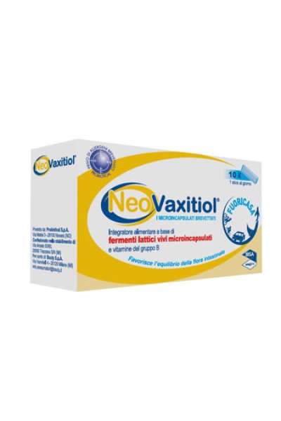 Integratore alimentare a base di fermenti lattici vivi microincapsulati e vitamine del gruppo B. Favorisce l'equilibrio della flora intestinale. NeoVaxitiol è indicato per favorire il ripristino del fisiologico equilibrio della flora batterica intestinale che può essere alterato da squilibri alimentare o terapie antibiotiche. Inoltre, la vitamina B6 contribuisce alla normale funzione del sistema immunitario.