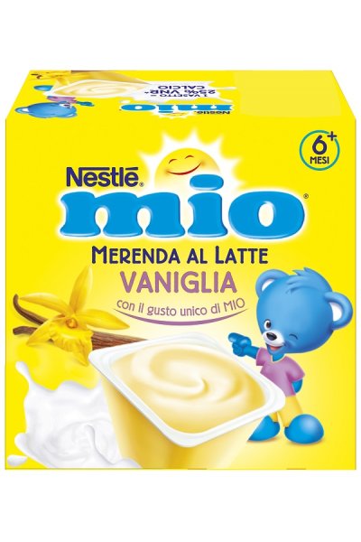 Merenda a base di latte con vaniglia, è preparata con oltre il 90% di latte e contiene naturalmente calcio, che contribuisce allo sviluppo normale delle ossa.