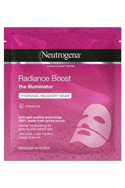 Neutrogena radiance boost è una maschera hydrogel per il viso ad azione illuminante. La maschera schiarisce la pelle, leviga e ne aumenta la luminosità. La maschera agisce in profondità, lasciando la pelle del viso tonica e luminosa. La sua formulazione è a base di vitamina B3. Il prodotto una volta applicato si adatta alla pelle del viso in modo da rilasciare in modo uniforme il proprio contenuto.