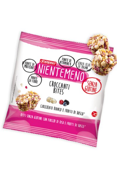Bites con fiocchi di riso, cioccolato bianco e frutti di bosco.