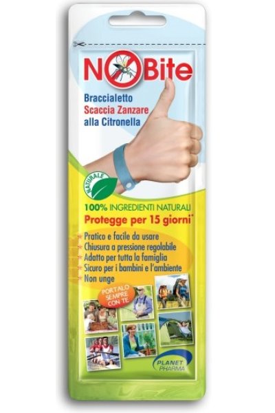Braccialetto profumato e sgradito alle zanzare che offre una protezione fino a 15 giorni. Alternativa naturale ai repellenti chimici per insetti, non è tossico e non contiene deet. No Bite è piacevolmente profumato di citronella, una fragranza spiacevole solo per le zanzare, che non si avvicinano a pungere Può essere indossato al polso, alla caviglia, attaccato alla borsa, alla biciletta, al passeggino etc. Chiusura regolabile, adatto a tutta la famiglia, sicuro per il bambino e l'ambiente. Non unge.
