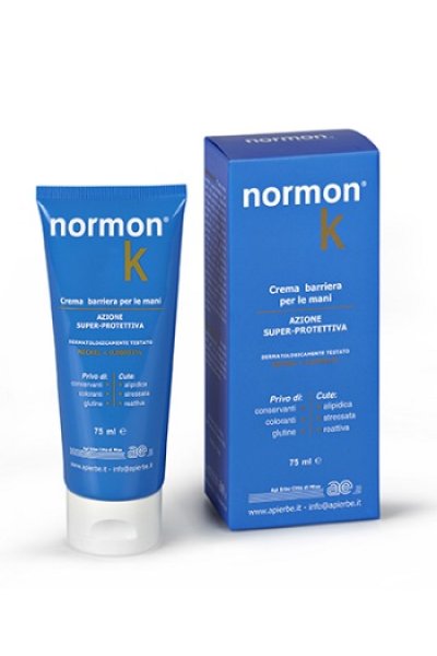 DescrizioneNormon K è una crema barriera super-protettiva per mani che lavorano. Applicata sulla pelle, prima di ogni lavoro, in casa, in ufficio ed in qualsiasi momento, previene e limita i danni che gli agenti esterni ambientali (vento, freddo, sole, polvere) e chimici, possono arrecare alla cute delle mani.