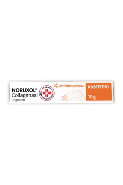 1 g di Noruxol contiene: Principio attivo: 0,52 ÷ 3,75 mg di collagenasi N contenente: • Clostridiopeptidasi A non inferiore a 1,2 Unità • Proteasi associate non inferiore a 0,24 Unità Per gli eccipienti, vedere 6.1.