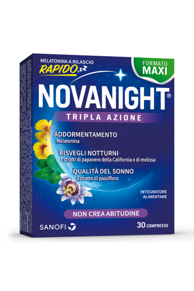 Grazie alla nuova tecnologia di NOVANIGHT, la melatonina viene rilasciata più rapidamente, entro i primi 15 minuti di assunzione.